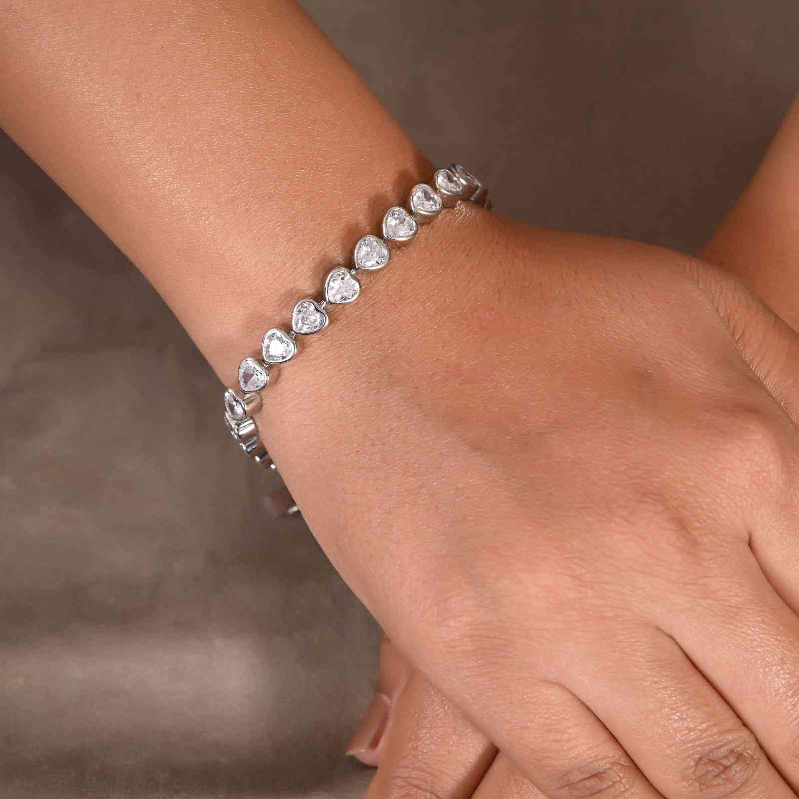 Lightweight, feminine, and designed to fit comfortably, this bracelet is more than an accessory—it’s a little love story you wear on your wrist. Whether you're gifting it to someone special or treating yourself, this silver and CZ heart bracelet is a sweet, stylish reminder that love is always in style.