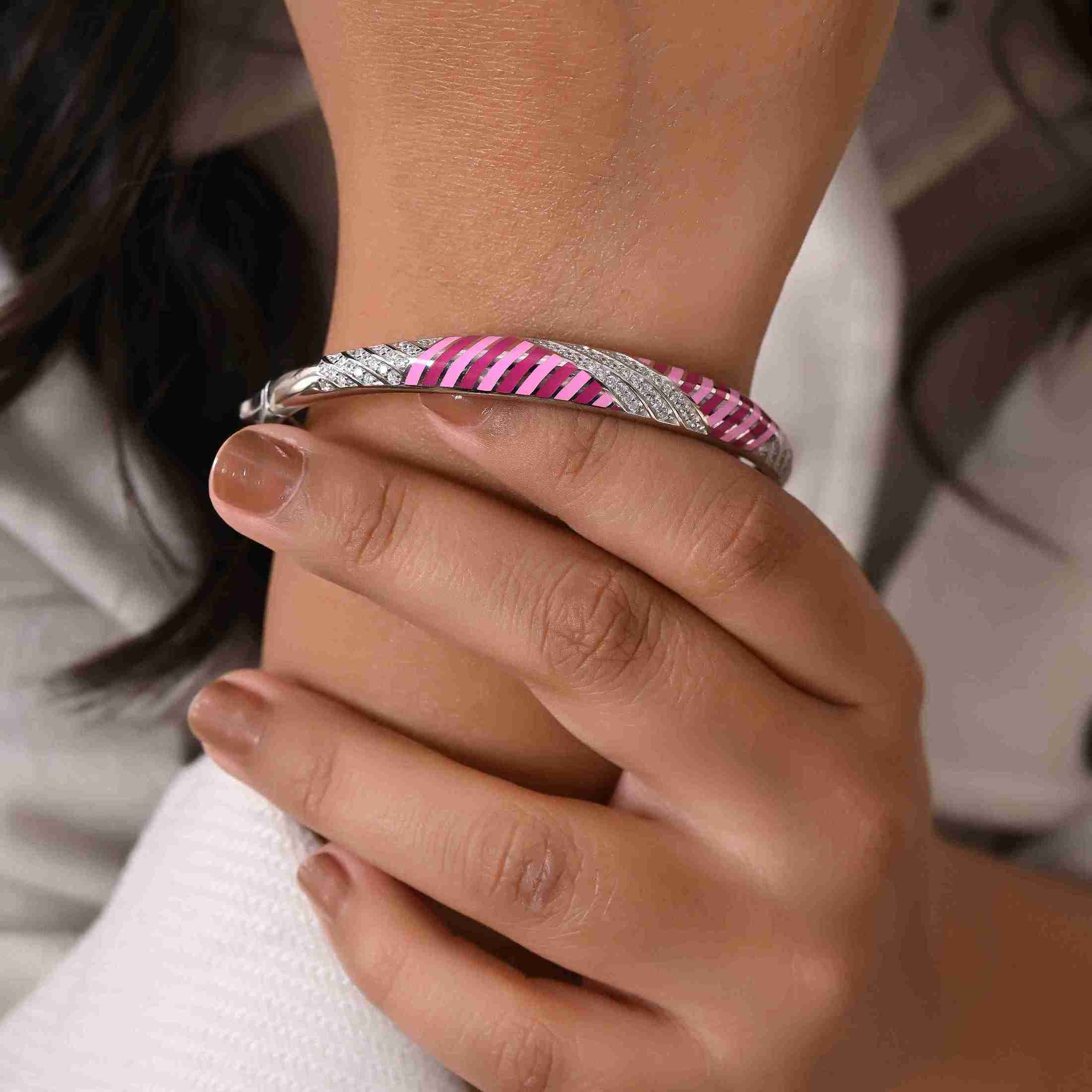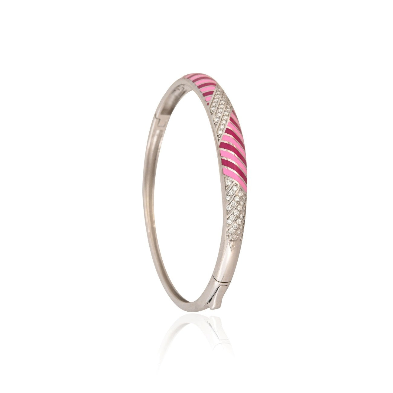 Whether you love bold accessories or just want a pop of color that turns heads, this silver and pink enamel bangle has all the personality you need—with all the elegance you want.