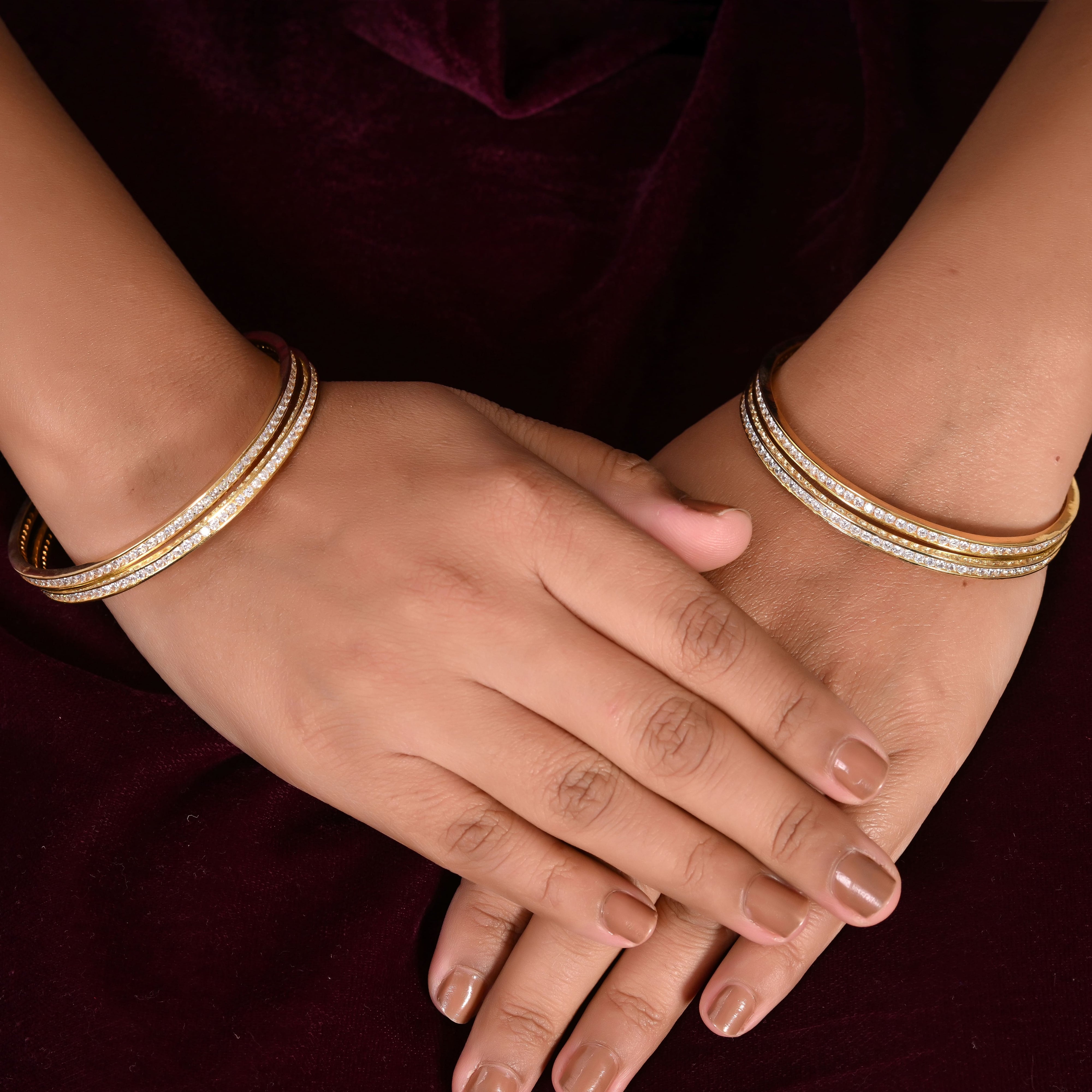 Each bangle is embellished with rows of shimmering Cubic Zirconia stones, offering the dazzling brilliance of diamonds at a fraction of the price. Cubic Zirconia is not only visually stunning but also resistant to scratches and everyday wear, making it ideal for both casual and festive occasions.