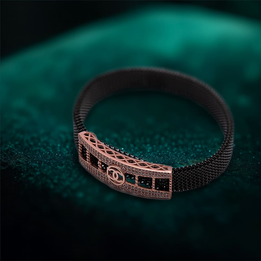 The intricate detailing and balanced design speak to your style—bold, unique, and effortlessly refined. The black and rose gold contrast gives this bracelet a powerful look, making it ideal for both formal occasions and your everyday street-smart style. Whether you're heading to a party, a meeting, or just hanging out, this bracelet adds the right amount of confidence to your look.