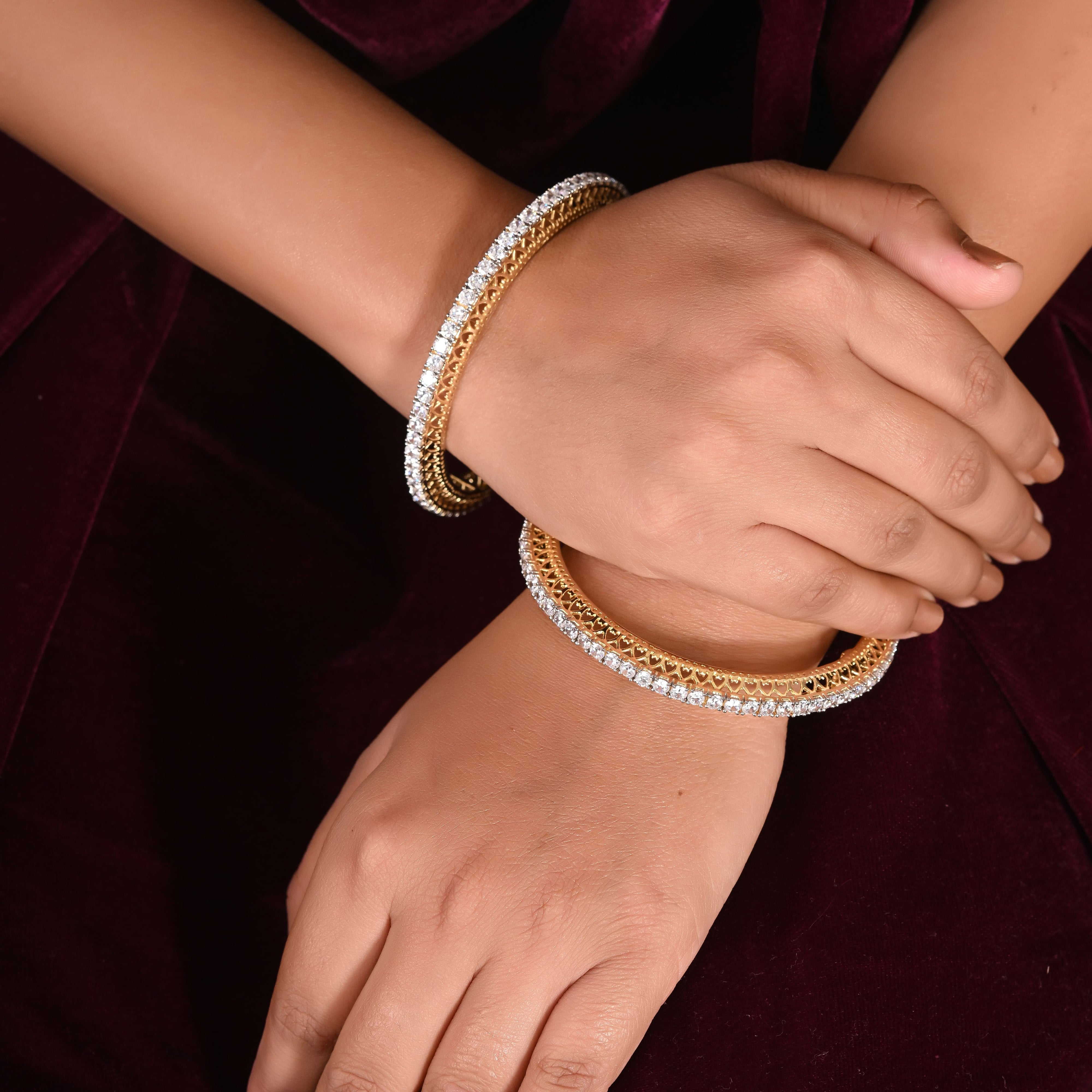 Embellished with high-grade Cubic Zirconia, these bangles deliver the dazzling brilliance of diamonds at a fraction of the cost. CZ stones are beloved for their high clarity, impeccable cut, and exceptional sparkle, bringing a luxe look without compromising on comfort or affordability.