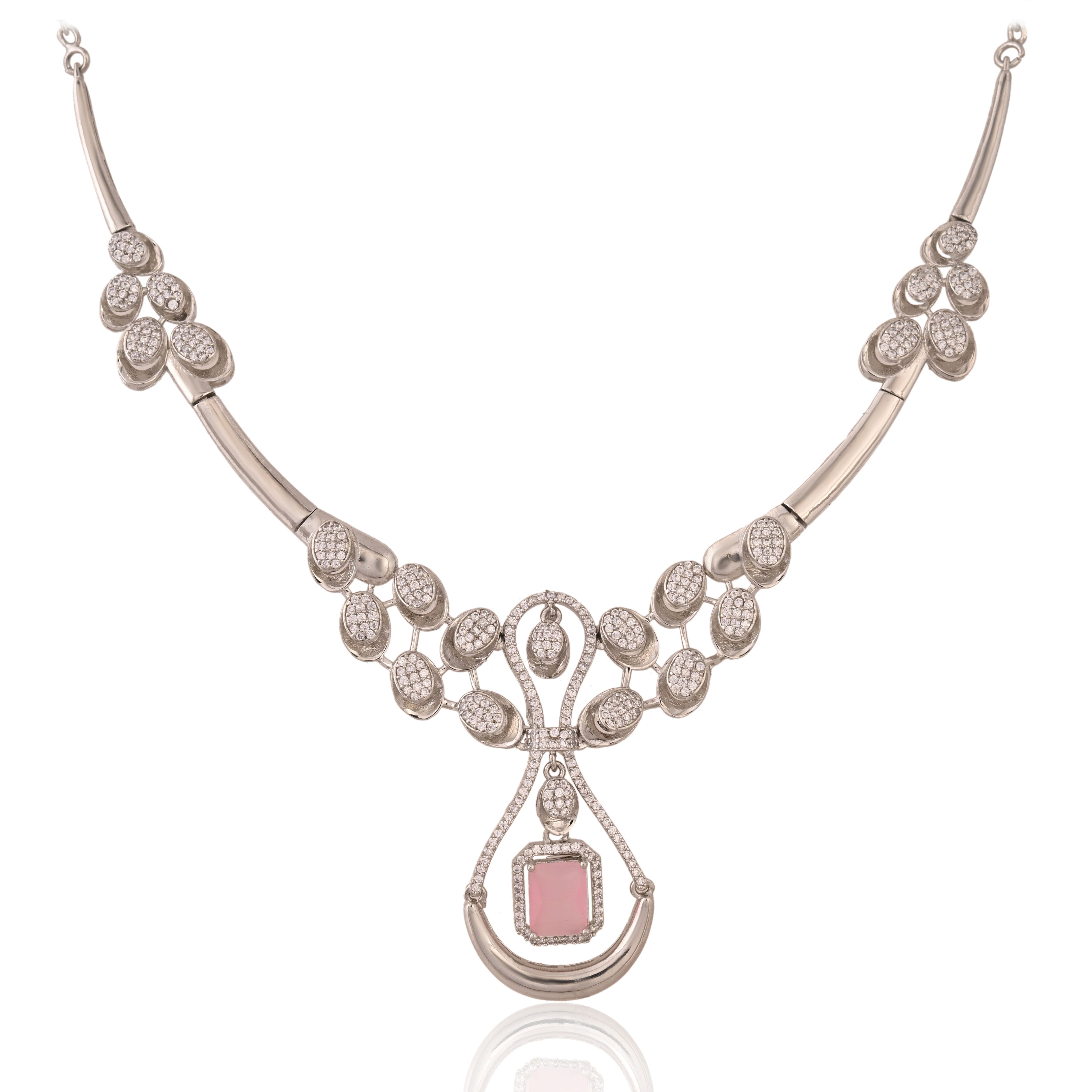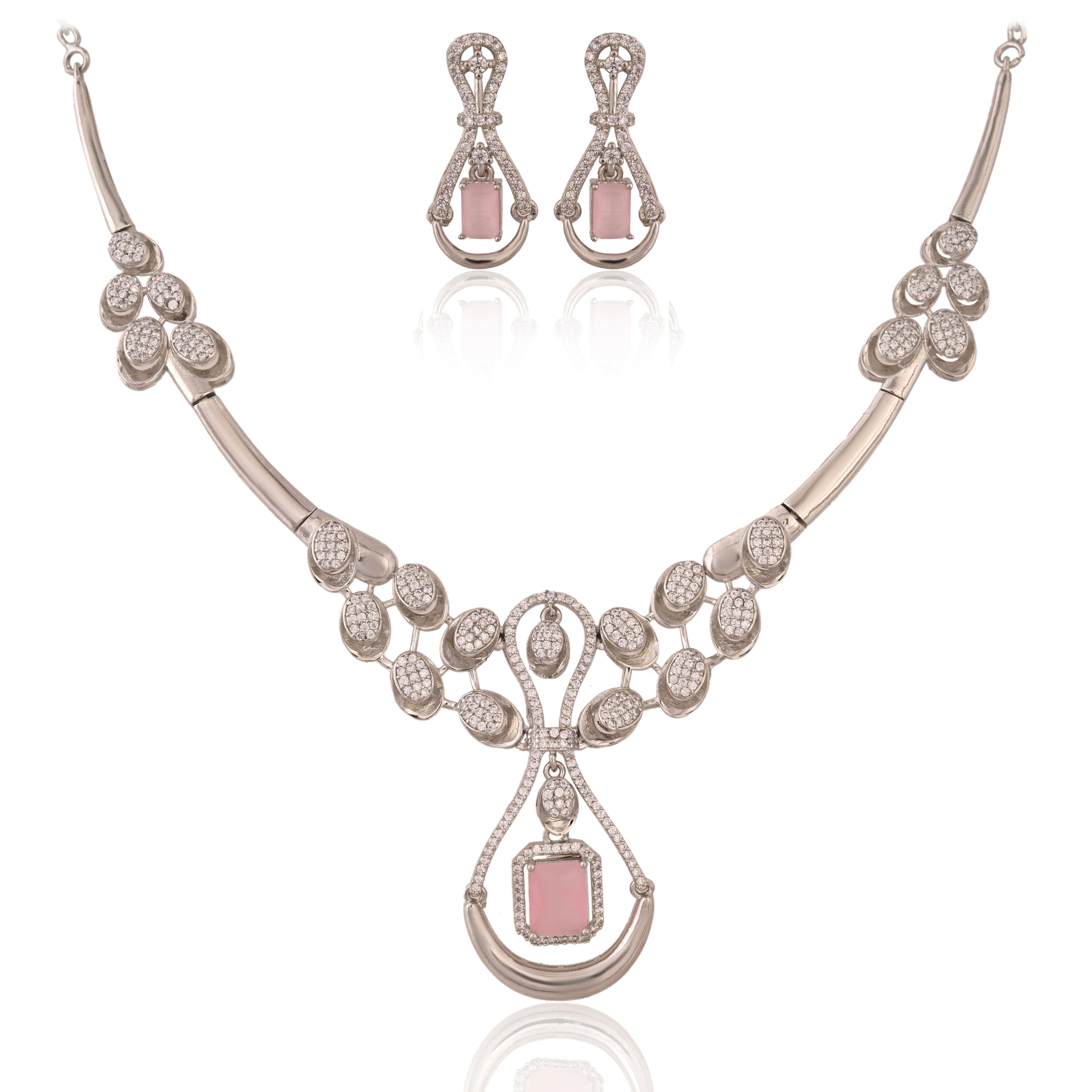 Whether you're gifting a loved one or treating yourself, this Cubic Zirconia-studded silver necklace set is the perfect choice for modern women who appreciate classic elegance with a contemporary twist.