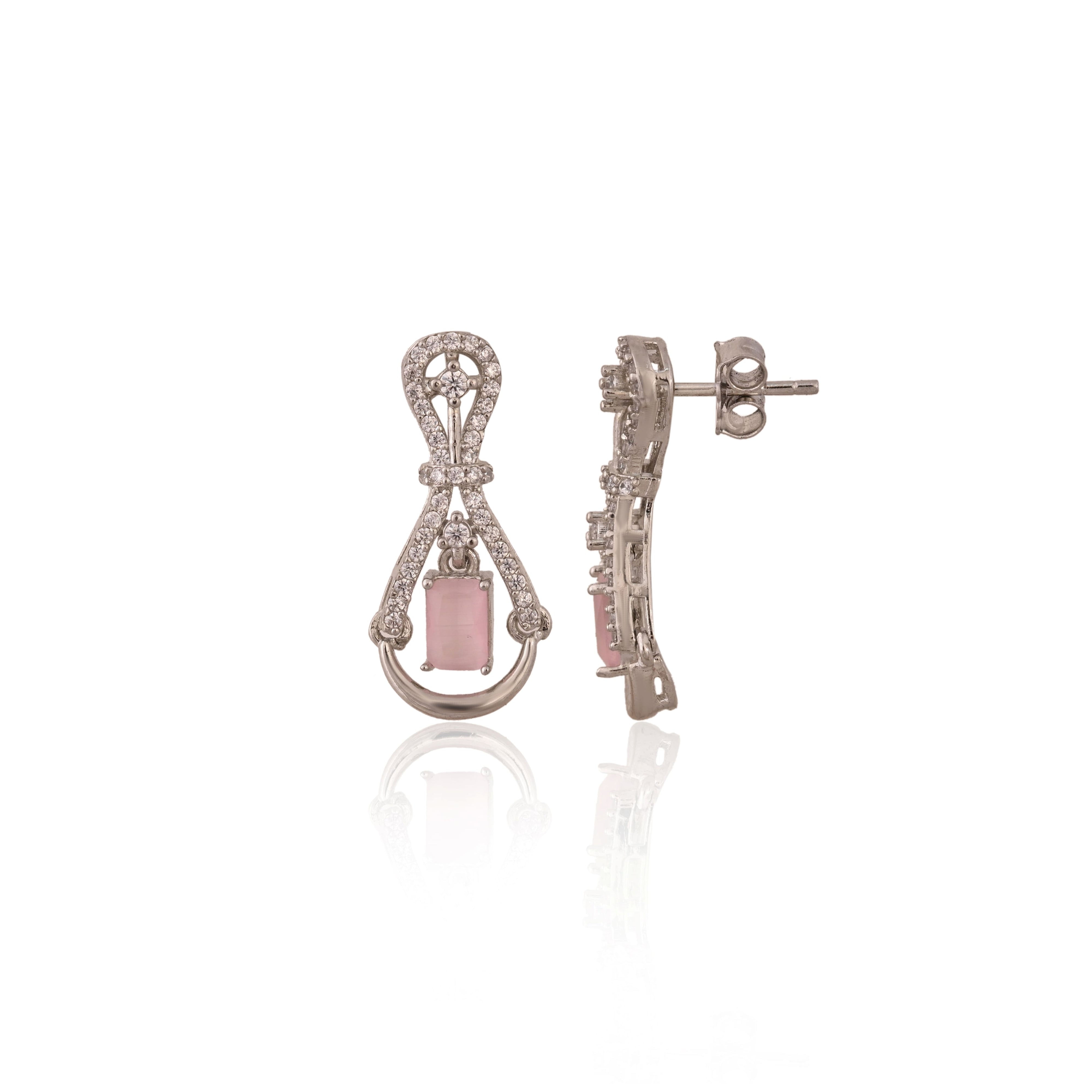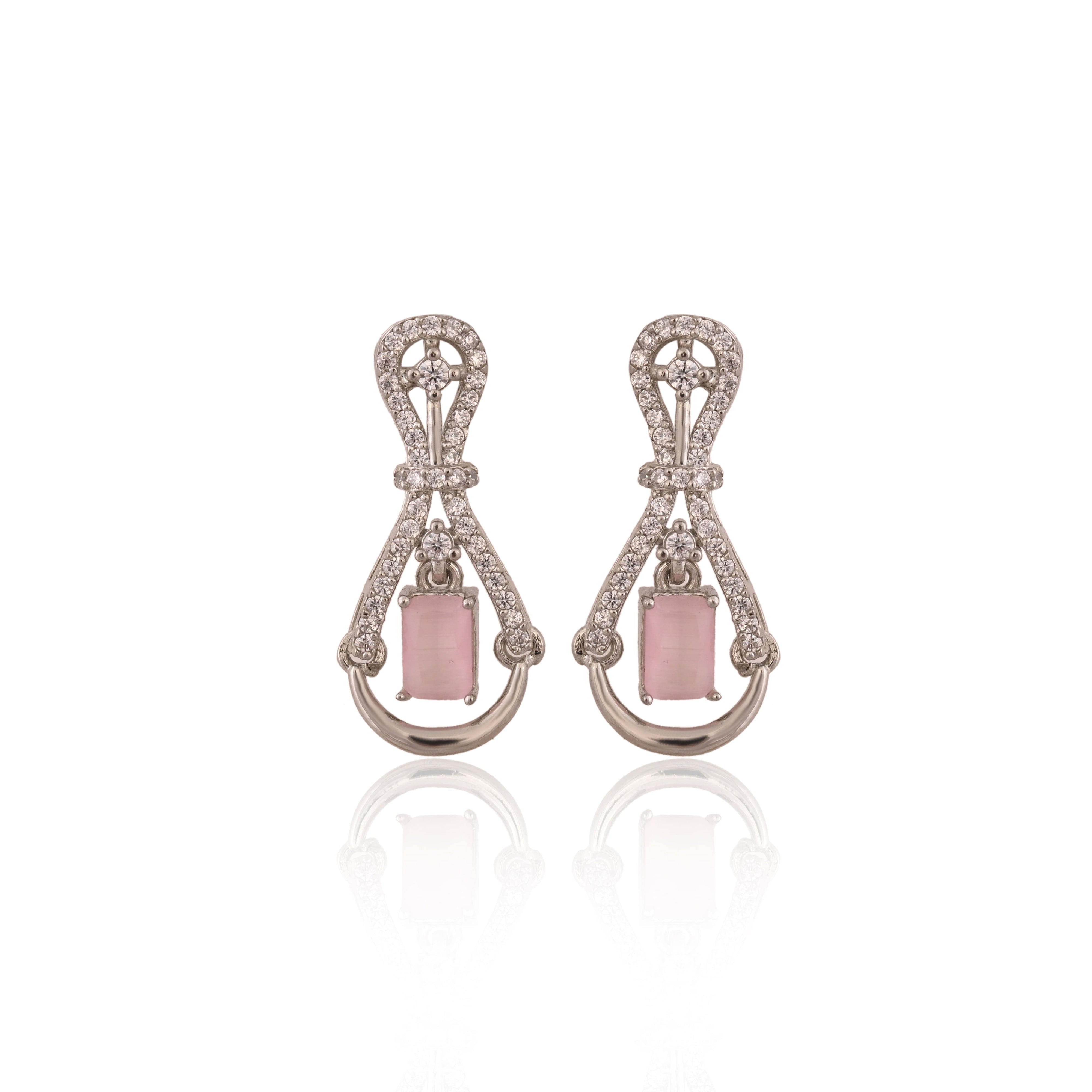 Cubic Zirconia, known for its diamond-like sparkle, enhances the design with a brilliant, luxurious finish—ideal for weddings, parties, or evening events. The gentle pink center stone adds a soft, feminine touch, making the piece both graceful and eye-catching.