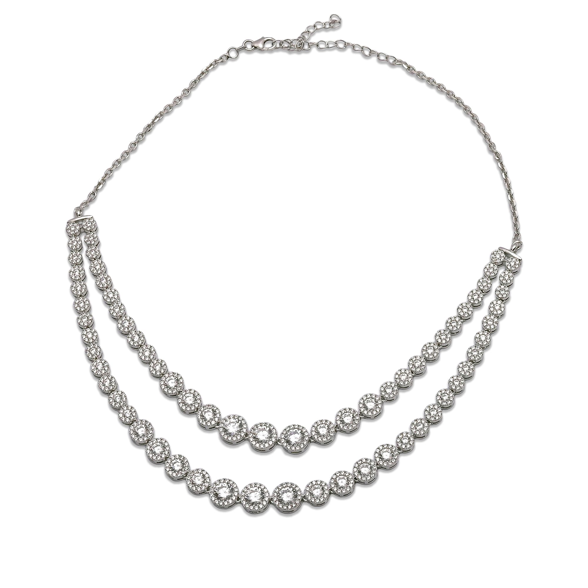 Whether you're dressing up a saree, gown, or even a chic blouse and jeans, this silver CZ necklace set adds that flawless finishing touch. It's lightweight, adjustable, and made to shine as bright as you do.