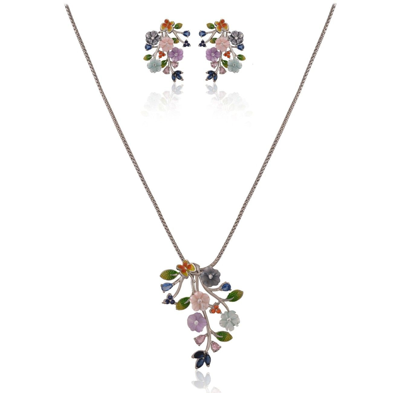 Add a fresh floral flair to your jewelry collection with this enchanting silver set—where timeless craftsmanship meets the cheerful soul of nature.