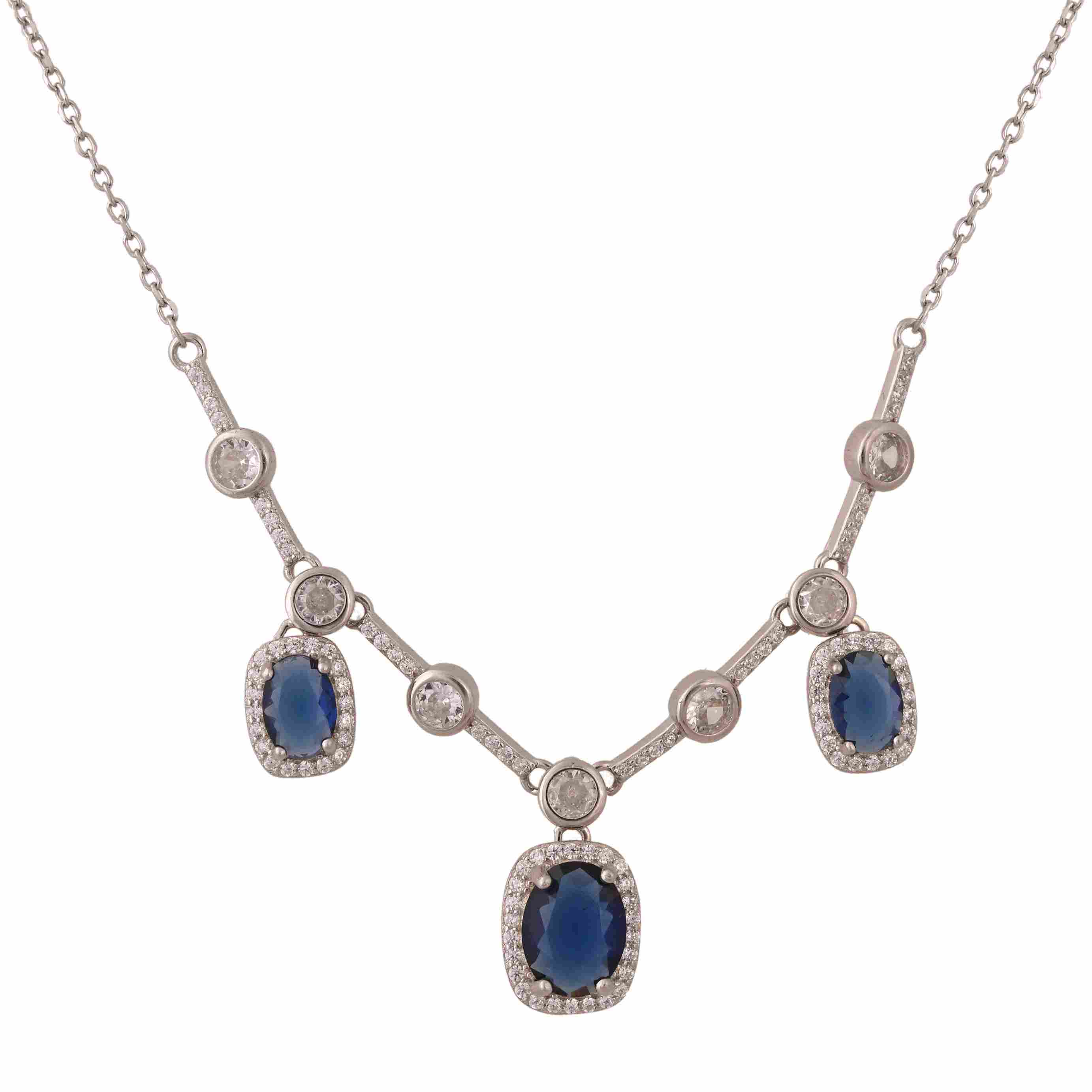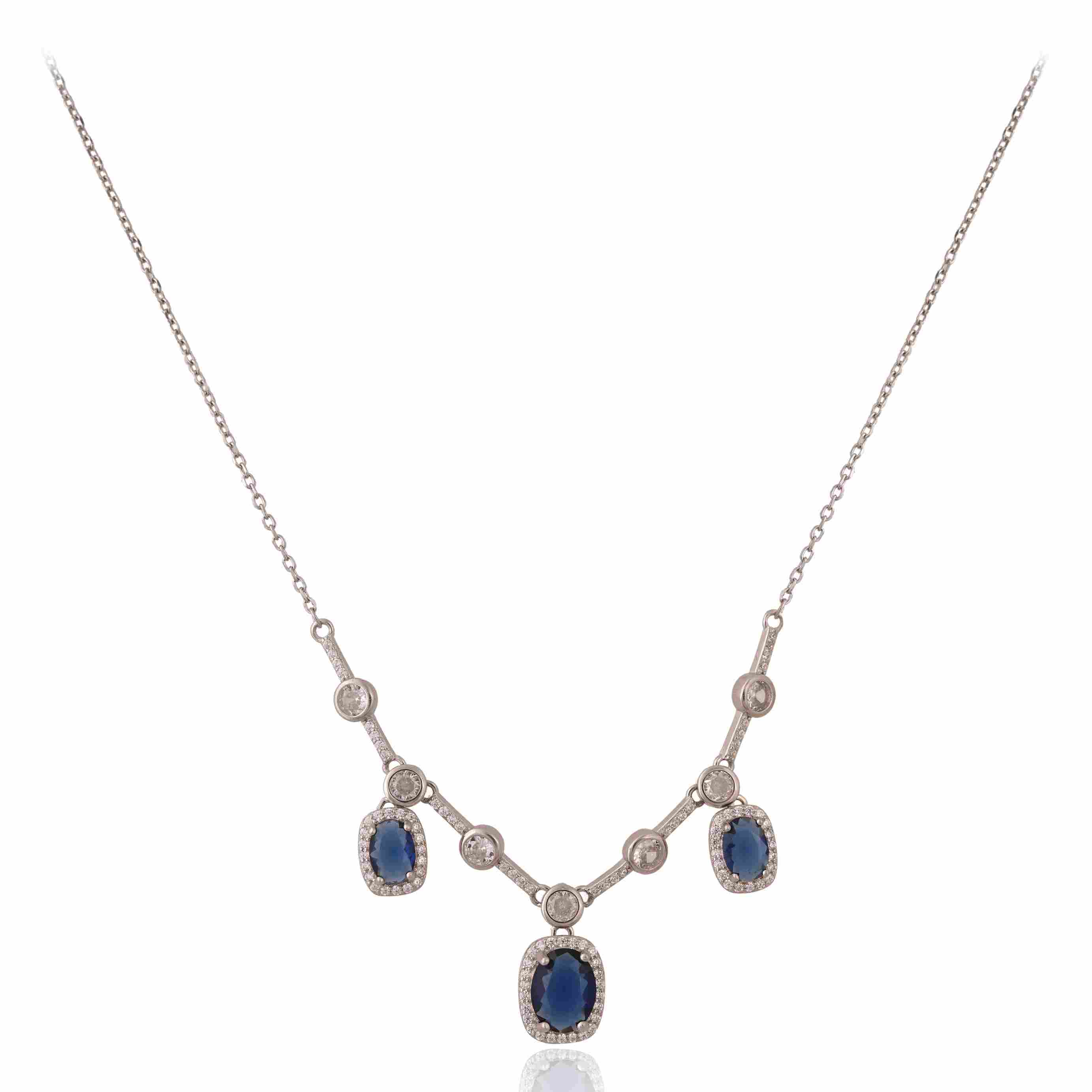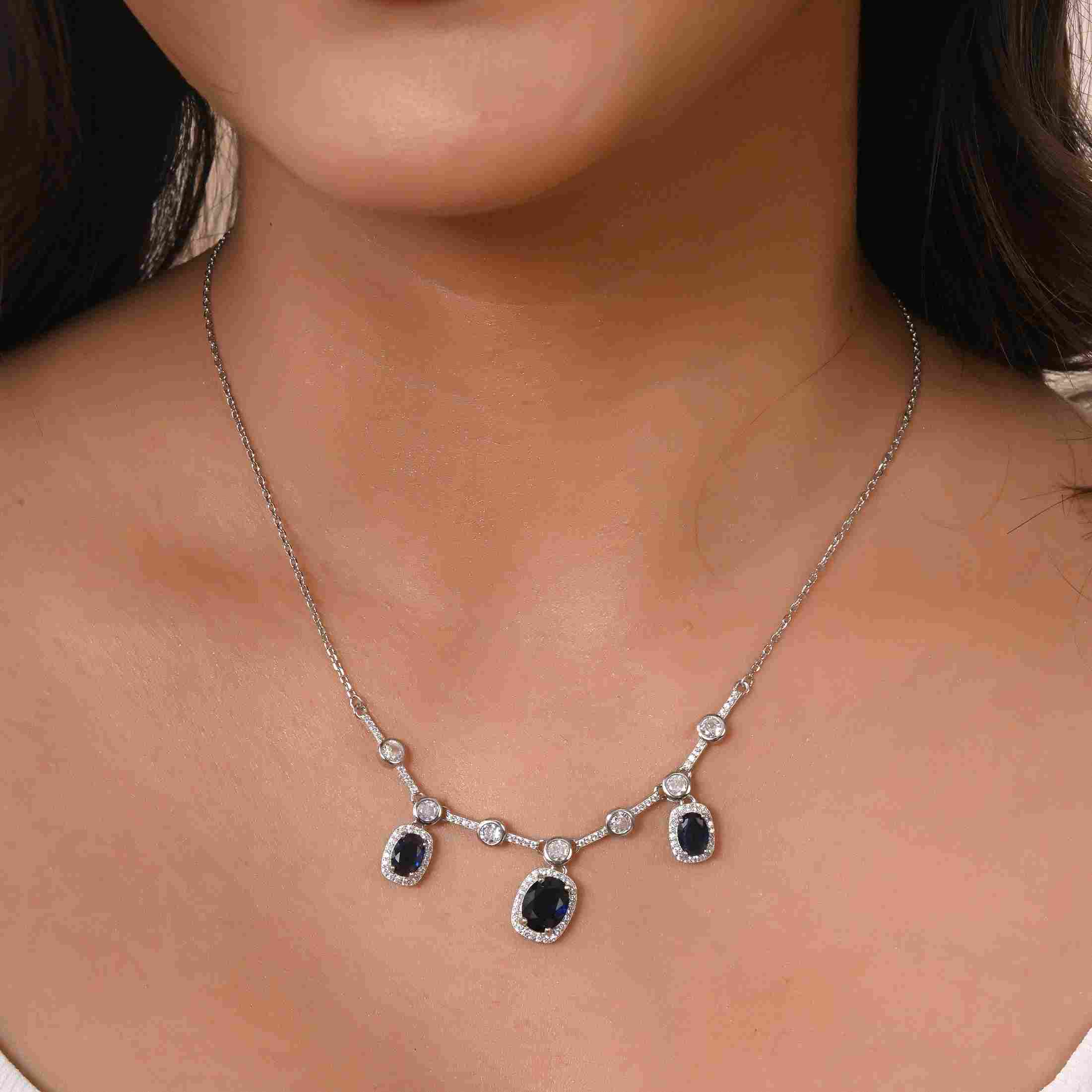 Looking for a necklace that feels like royalty without the royal price tag? This silver necklace with deep blue and brilliant white cubic zirconia stones brings all the regal energy in one timeless piece.