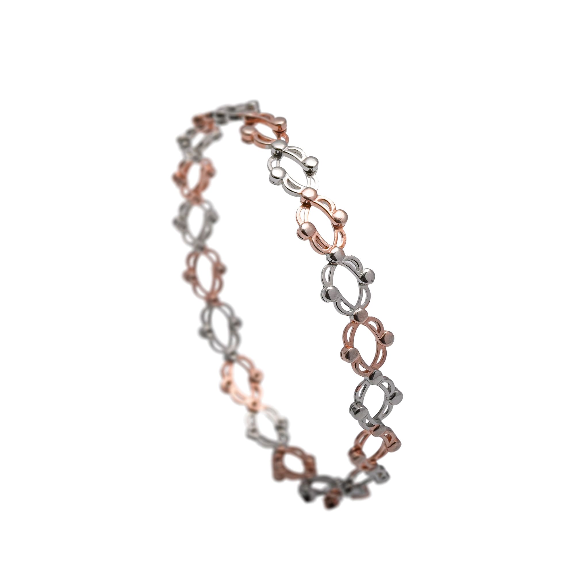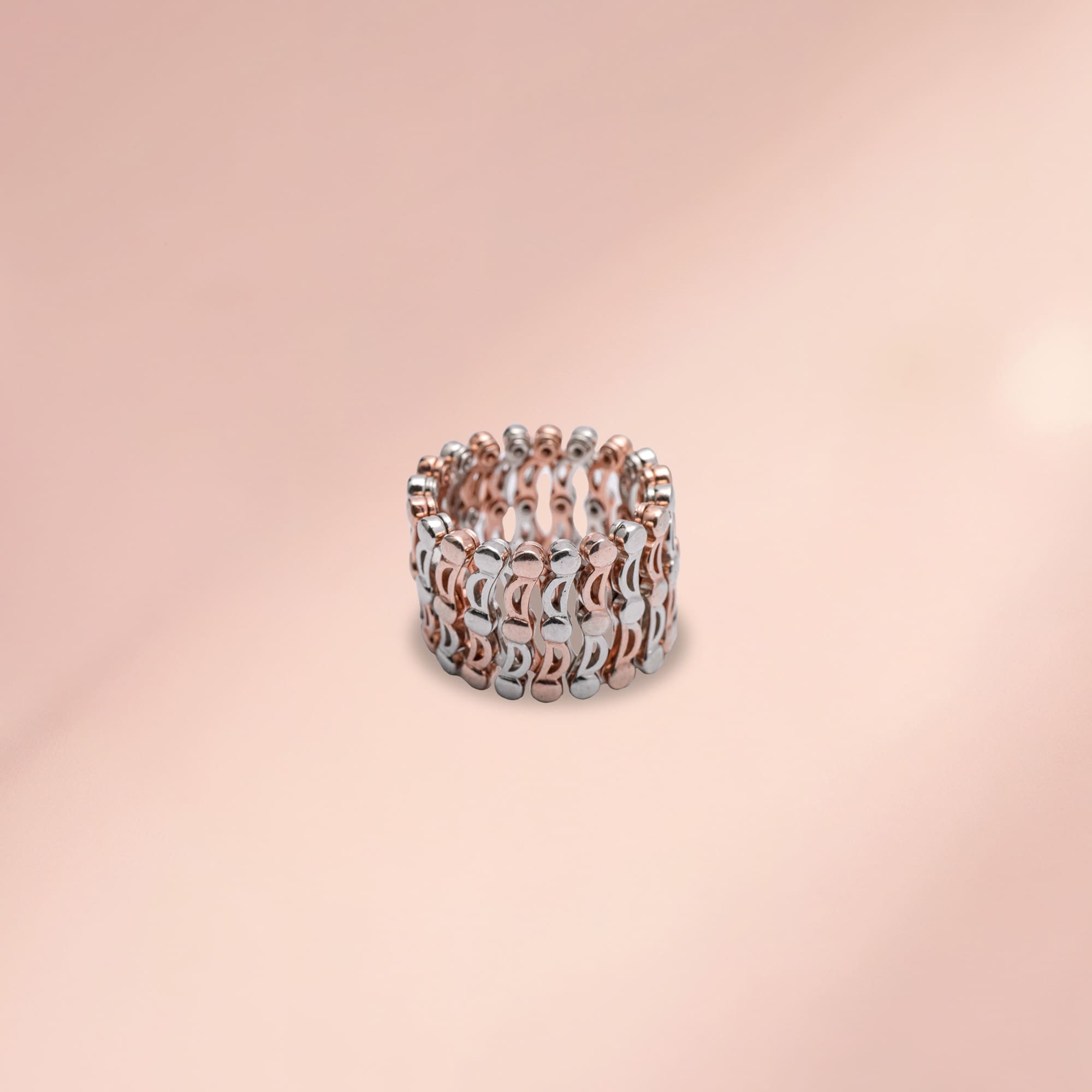 Crafted from high-quality sterling silver with a graceful touch of rose gold finish, this piece brings together modern aesthetics and timeless charm. The interlocking floral-inspired pattern adds softness and sophistication, making it ideal for everything from brunch dates to formal evenings.