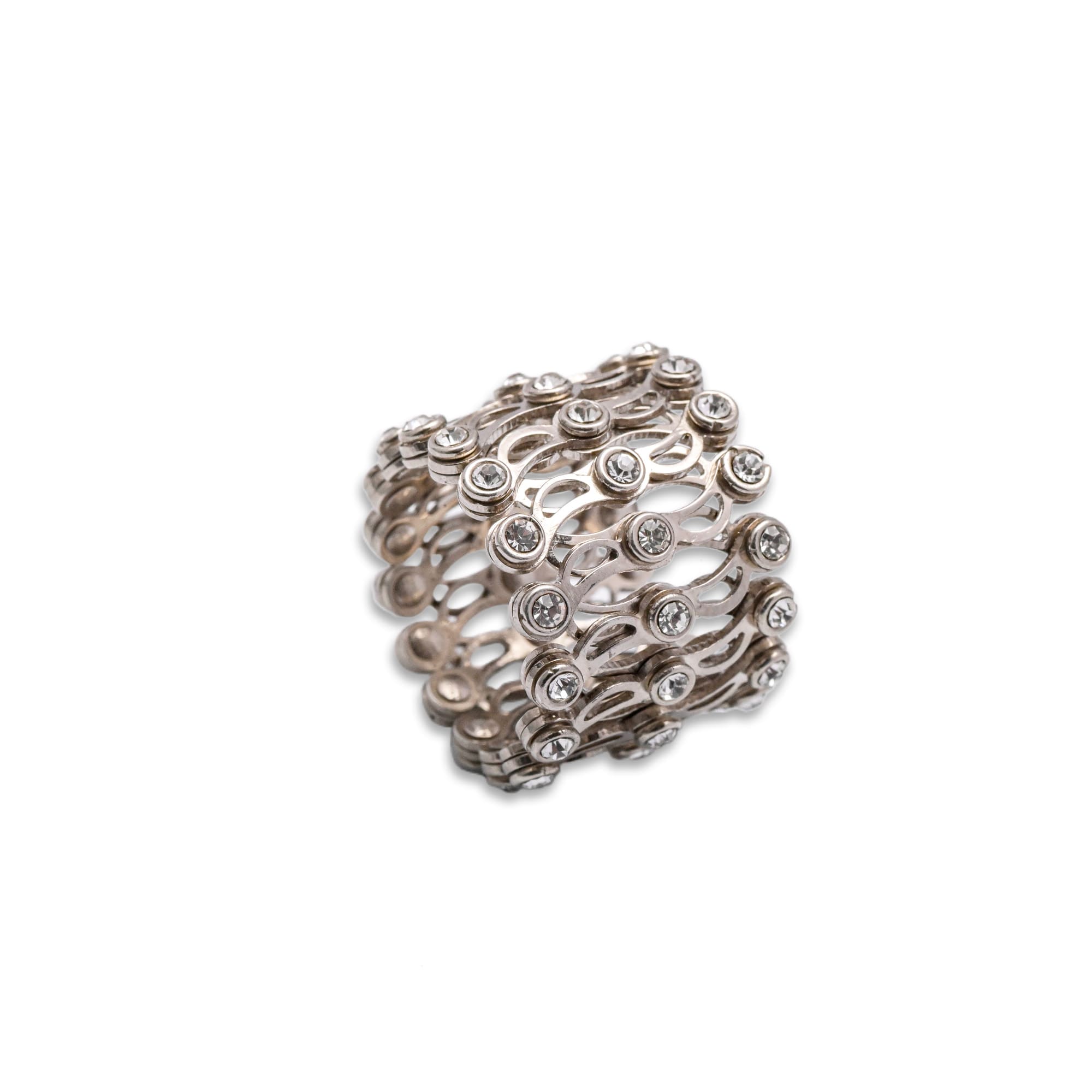Crafted from premium sterling silver, it features a fluid, openwork design embellished with sparkling stones, offering a mix of structure and shimmer. Whether you're pairing it with a casual outfit for a coffee run or dressing it up for an evening event, this piece brings effortless flair to every look. It’s the kind of jewelry that turns heads and sparks conversations.